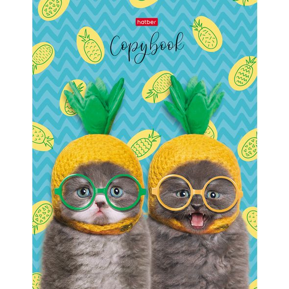 Тетрадь 160л А5ф на 4-х кольцах мат.ламин. -Коты-ананасики- в индив.упак.